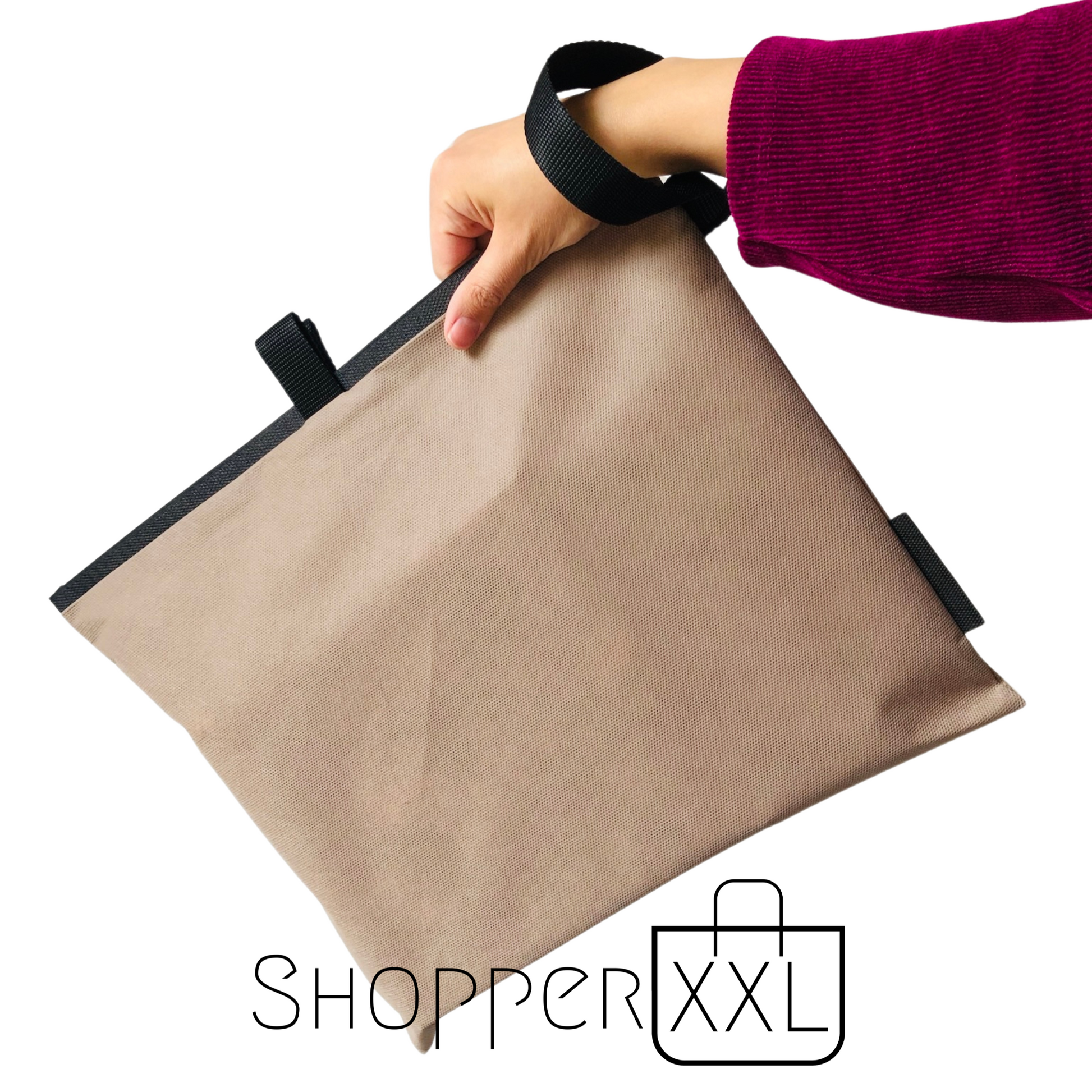 - Design senza manici: L'impugnatura integrata è pensata per offrire una presa comoda e un aspetto sofisticato, rendendo la shopper facile da portare al polso con naturale eleganza.